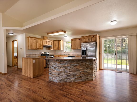 This comfortable ranch style home offers three bedrooms, two bathrooms, and a large garage, providing ample space for families or those who love to entertain. Featuring an open-concept living area and a well-equipped kitchen with lots of storage. the many windows allow for lots of sunlight in each of the rooms. The backyard/front yard is large and unfenced with a newly upgraded porch/deck, perfect for summer dinning. With its classic design and versatile layout, this home is sure to meet the needs of anyone needing the space. Notable information: Pets are welcome but with a two-pet max. Photos of the deck are older and do not reflect the new deck/porch.