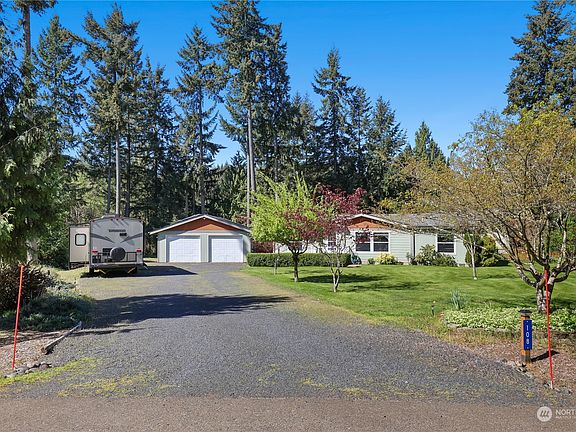 Come enjoy this well maintained home on a beautiful 0.7 acre lot with mature landscaping. The home features an updated kitchen with pull-out shelves and tons of storage. Split bedroom design with the primary bedroom at one end and two more bedrooms at the other. Primary suite has a walk-in closet and updated bathroom. The detached 2-car garage has 12 solar panels to lower your electric bill, and there’s a heat pump for efficient heating and cooling. Plenty of room for RV parking, and a huge yard to entertain or relax. New roof in 2020!