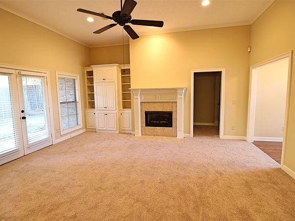 Pretty home in a great neighborhood! 3/2 split plan with large living room with gas log fireplace and built-ins; Large kitchen with lots of cabinets, pantry, lots of counter space and storage with a large eat at bar; Large master suite with big walk-in closet, jetted tub, separate shower, and his & her vanities. Ceiling fans in all bedrooms and family room; Nice guest bedrooms with nice size closets. The backyard is nicely landscaped and fully privacy fenced. Great covered back patio. Fresh paint and new carpet! Call today to see this one before it's gone!