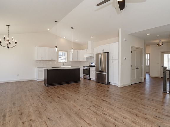 Wow! Take another look now that the interior is completed and new pictures are here to view!! You will love the open kitchen with beautiful countertops, tiled backsplash, soft close drawers, pendant lighting, farm sink, pantry, with all the appliances (including the refrigerator)!!! High energy efficient home with spray foam insulation in walls and R-49 cellulose in the attic space. 3 Bedroom ranch with 2 baths, covered porch and 3 car garage. 12 x 12 back deck! Open floor plan with cathedral ceiling great room with fireplace. Appointed primary bath has both walk-in shower and stand-a-lone bathtub, with double sinks, and pocket door leading to spacious closet. Unfinished basement with 9ft ceilings-has space to finish 2 more bedrooms, rough-in for full bath, & family room! Nice size corner lot in a great subdivision!! Close to the trail!