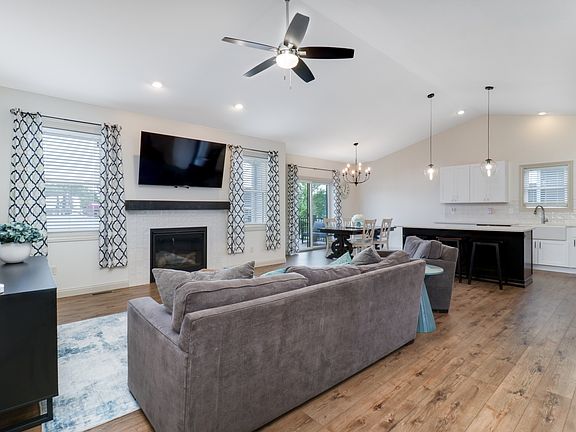 GORGEOUS Better-Than-New-Construction RANCH! A bright, open floorplan, cathedral ceilings, cozy gas fireplace, hardwood flooring and tons of natural light will make you feel right at home. The inviting kitchen features an oversized island with extra room for seating. Plentiful cabinetry with soft close drawers are accented by quartz counters, apron sink, timeless tile backsplash, high end stainless appliances & a spacious dining room area. Generously sized bedrooms, including the incredible primary haven, complete with cathedral ceiling, hardwood flooring & its own luxury private bathroom. This ensuite is appointed with dual vanity sinks, a soaking tub, walk-in tiled shower and a huge closet! A main floor mudroom features cabinetry to the ceiling for all of your items and a stunning custom drop zone area. Fully finished, beautiful basement offers 9ft ceilings, enormous great room, fourth bedroom, full bath and tons of storage with built-in shelving! Professionally landscaped corner lot with deck and covered front porch in fantastic subdivision near the trail. 3-car garage with 220 wired in garage for EV charging. Highly energy efficient home with spray foam insulation in walls and R-49 cellulose in the attic space.