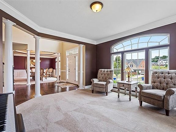 This incredibly spacious & stunning 4 bedroom home sits on a private lot in Taylor Ridge, one of Adams Twp's most desirable neighborhoods. Entry provides an immediate WOW FACTOR w/dual-sided staircase! The main level boasts a study, dining room, incredible great room w/stone floor-to-ceiling fireplace and high ceilings allowing abundance of natural lighting throughout! Open concept kitchen is simply stunning w/an oversized granite island w/bar seating, stainless steel appliances and a nook perfect for a coffee or wine bar. Main-level provides butler's pantry as well, first floor laundry, mud room w/lockers. HUGE finished basement is complete with a full bar, new bathroom (2019) custom-tiled shower, and surround sound to enjoy movie nights - perfect for entertaining. Relax on the custom-built back patio complete with pavers, bench seating and a firepit. Convenient location w/access to local parks, schools and so much more!!
