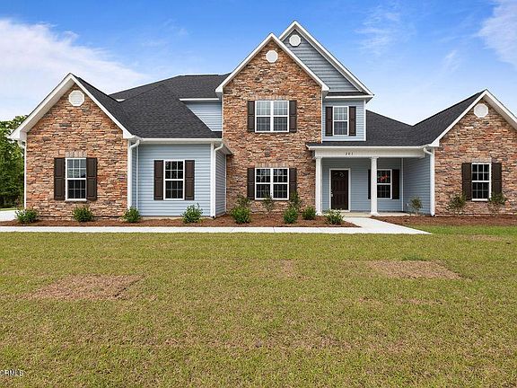 Stunning Avalon Floorplan with Side Entry garage! This 5 bedroom, 3.5 bathroom masterpiece has a tremendous amount of space, including formal dining room, one of two master bedrooms on the first floor and a cozy keeping room with a fireplace just off of the kitchen. The exterior of the home is quite charming with landscaping including sod in the front yard. The foyer makes a great impression upon entering the home. As you enter, you will discover the formal dining room making this the perfect room for entertaining and enjoying company. The kitchen is equipped with stainless steel appliances such as smooth-top range, microwave hood and dishwasher. Also included are beautiful counter tops, an island with a stainless steel sink and single lever pull out chrome faucet. This home features a very spacious family room, large back patio and best of all, one of two Master Suites on the first floor! This perk is hard to find! Both master suites feature a decorative trey ceiling, huge walk-in closet, ceiling fan, and is connected to the master bathroom. This bathroom has a tub and a separate walk-in shower! Upstairs features 3 bedrooms, one of them being a second Master Bedroom. All rooms feature walk-in closets and are pre-wired for cable, as well as ceiling fans. A 2 car garage completes this beautiful, one-of-a-kind home! Located in the heart of Swansboro within a short distance to the beautiful and world-renowned Hammocks Beach State Park. Close to shopping, bases, dining and of course the beach! You cannot go wrong with this home in this ideal location. Proximity to schools and a peaceful community add to the charm of this area! Floorplan renderings and photos are of similar homes and solely representational. Design features, measurements, elevations, etc. may vary in the final construction. Call to verify.