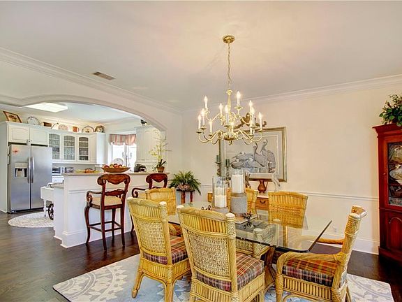 Attractive patio home with fabulous lagoon and golf course views. When you walk in the door the first thing you see is the fantastic view from the spacious living room. The living room features a 17 foot ceiling, and a fireplace flanked by built-in bookcases. The kitchen has tons of storage and is open to the dining room. The primary bedroom is on the main level and features a separate sitting room, his and her closets and a large bath with double vanities, jacuzzi tub, and separate shower. Upstairs are three bedrooms and two baths. Across the back of the house is a screened porch and large deck. Low maintenance yard is maintained the HOA, leaving you more time to enjoy the island life! CHECK OUT 3D VIRTUAL TOUR!