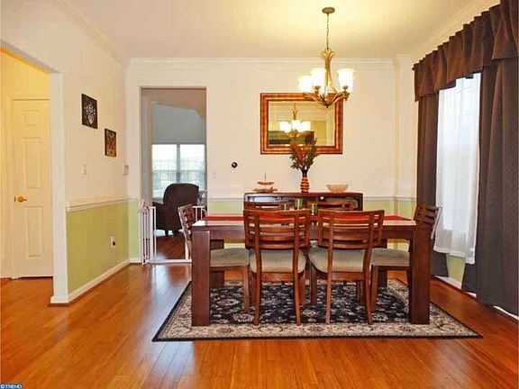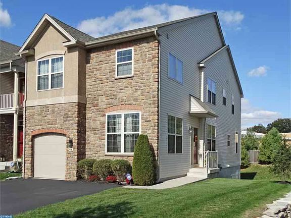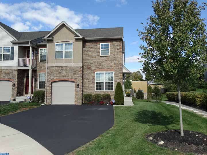 An impeccably maintained end unit townhome, situated on a cul-de-sac, with tremendous attention to detail. There is a place for everything in the custom designed closets, and the craft/hobby room is a dream! Enjoy the media room with family, and the amazing custom stone and granite wet bar entertaining your friends. In the spring and summer relax on the maintenance free deck. The open floor plan on the main level offers a side entry and foyer adjoining the living and dining rooms featuring gleaming hardwood floors and crown molding. The dramatic two story family room, featuring a fireplace with gas insert, is open to the breakfast room and kitchen with solid cherry cabinets, granite counters, ceramic tile backsplash, stainless appliances and terrific center island with pendant lights. Retreat to the upper level with a fabulous master suite with crown molding and an amazing custom designed walk-in closet, plus a luxurious bath boasting a soaking tub and vanity with cultured marble. Two additional bedrooms, bath and very spacious laundry room complete this level. In addition to the garage there is parking in the private drive and cul-de-sac. This amazing home offers more space than you can imagine! Conveniently located right down the street from the train station, close to commuting routes, shopping and restaurants. This is truly a home to consider!