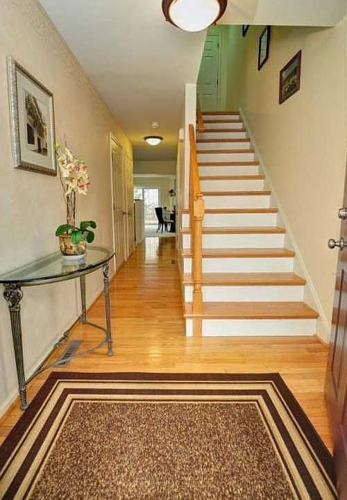 Meticulously maintained end-unit townhouse tucked away in the quiet community of Vernon Court. The kitchen has granite counters, stainless steel appliances, warm maple cabinets, spacious breakfast bar, and a double sink. The kitchen opens to the living room/dining area offering a corner gas fireplace, and glass sliders to a large deck for outdoor dining and enjoyment. The foyer area has a gleaming hardwood floor that extends to the updated powder room, stairway, and a spacious 2nd floor landing. The master bedroom has a large walk in closet with well-designed organizers and built-in drawers. The master bedroom also offers a luxurious master bathroom with updated fixtures, large soaking tub, walk-in shower, ceramic tile flooring, and tile surrounds for the tub and shower. The two other bedrooms also have terrific built-in closet organizers and are served by a nicely updated hall bath. Convenient 2nd floor laundry. The basement is neat and clean. It offers plenty of storage. 1-car garage. Warm neutral d~cor and great natural light throughout. Move in ready! Excellent location with quick access to the PA Turnpike, Septa Lansdale-Doylestown Line, and Rts 63, 463 and 309. Owner pays for association fee. Tenant responsible for water, sewer, gas, electricity, and other utilities.