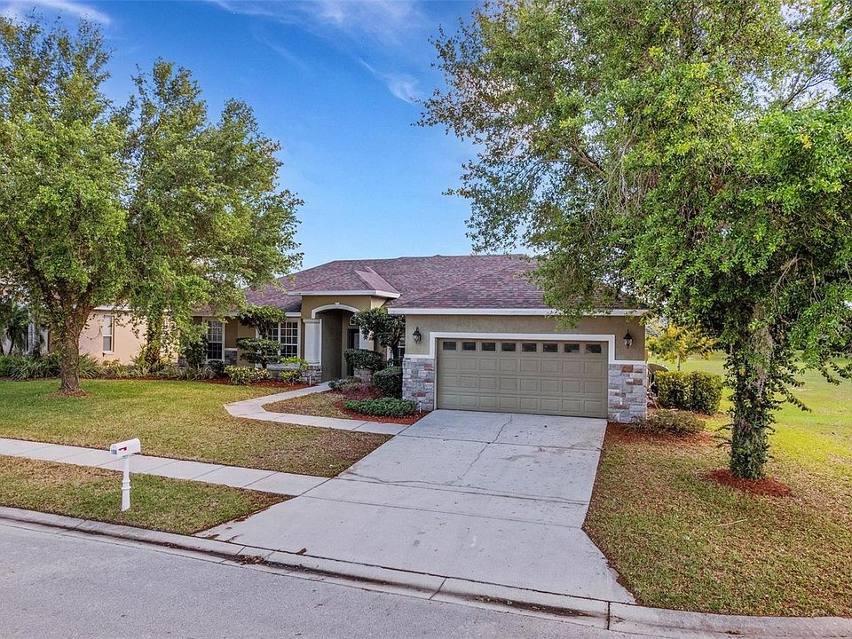 This home offers great features and a great location! The home is located in the gated community Hills of Arietta, near Lake Arietta, and nestled between Tampa and Orlando, offers a spacious split floor plan, spanning 2,296 square feet, 4 bedrooms, 3 full baths, and a separate office space. With a NEW ROOF installed in 2024, this home is not only beautiful but also move-in ready, offering peace of mind and a modern NEW HVAC system, and the location in a cul-de-sac guarantees ample parking for gatherings of any size. It truly is an impressive property with a grand entrance leading into the expansive open great room, soaring high ceilings, and then the heart of this home is the inviting open kitchen, complete with birch wood cabinets, stainless refrigerator, generous storage, and a generously sized breakfast nook overlooking the expansive backyard. The primary bedroom has ample space, double closets, and a spa-like master bath featuring double sinks, a walk-in shower, and a relaxing garden tub - the perfect sanctuary. Additionally, this home features a fantastic 4th bedroom with its own bathroom, providing an ideal setup for a mother-in-law bedroom/bathroom. Property is landscaped and has an irrigation system. Enjoy the convenience of easy access to major thoroughfares like I-4, Polk Parkway, and Highway 92, as well as nearby amenities including Polytechnic and a newly opened Publix. This is an opportunity to live in a gated community in Central Florida with many upgrades and move in ready. Renter is responsible for all utilities and yard maintenance