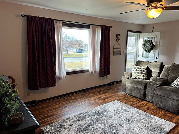 This move in ready home features the BEST OF BOTH worlds! Located on a larger lot with a fenced in back yard, you have extra elbow room outside. The lot extends past the fence in the back and on the sides; cattle graze in the pasture in the rear of the property. There is a camper outlet on the side of the garage next to the extra parking pad for convenience in getting your camper ready. Several updates have been made throughout the home from the new carpet, vinyl plank flooring, interior paint, newer kitchen, and newer kitchen appliances. There is a 220 outlet for the stove if you prefer electric over gas. The primary bedroom features three closets and has an L-shaped space; two bedrooms were combined into one large bedroom. The main bathroom features a double sink, generous storage, and is spacious. The main floor laundry also includes a half bath, so when you come in from the outdoors, you have easy access to a bathroom. The large family room offers garden windows. There is generous storage space in the mechanical/storage room. You will appreciate the extra deep garage with a separate room in the front of the garage for your storage needs. Come check this home out today!