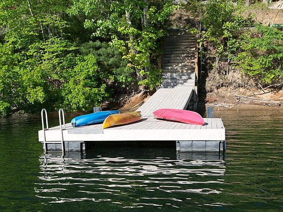 This great lake front home has private deeded lake access and a private dock. Homes are well spaced and there are approximately 17,000 acres of national forest that surround the lake. The house has been used as a vacation rental and there is a great rental history available. The house has 3 levels - the entrance is on the main floor and contains the king master and en-suite bathroom as well as a 2nd bunk bedroom with en-suite bathroom. The living room has a stone wood burning fireplace as well as a large deck with sliding glass doors and a majestic view of the lake. The open plan kitchen has a breakfast bar island and the dining area is just off the kitchen area. Also off the main level is a screened in porch area with beautiful view of the lake and a large outside dining area. The laundry and powder room are also on the entry level. The lower level houses two bedrooms, separated by a Jack and Jill bathroom as well as a bonus room and a full bathroom. The re is a pool table, ping pong table as well as a living area on the lower level. The upper level of the house has 2 bedrooms, each with en-suite bathroom. There is also a game rea upstairs. The house has a detached double garage and will be sold fully furnished (apart from some personal items). The Pontoon boat is also included.