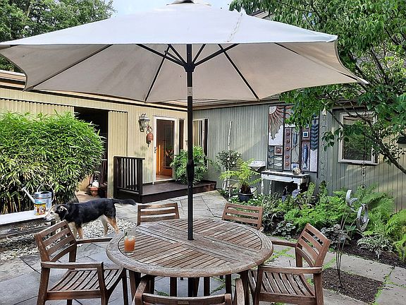 If you love lots of daylight, living close to nature and plenty of privacy, this house is for you. Located in the heart of Pennington, the open floor plan, light wood details, and Jotul wood stove give it a scandinavian modern feel. On almost one half acre, this home sits on one of Pennington’s prettiest streets. A former nursery, the property has mature trees. The outdoor spaces are lushly planted, with gardens, ornamental trees and even a plentiful berry patch. The house sits off the road, affording great privacy. The front courtyard has a fountain and is the perfect quiet place to start your day. It is also bird heaven - be prepared to hear them sing in the background of your zoom calls! You enter the home through a bluestone courtyard with mature ferns and flower gardens. The Foyer leads to a generous Entry Hall where you can see through the sunny house to the backyard. The view opens to one of three decks and a stone terrace with a fire pit. With new flooring throughout the first floor, the home’s open floor plan easily accommodates family and entertaining – whether family for Super Bowl or friends for a cool summer supper. The Jotul wood stove keeps you roasty in the winter. In the summer, mature trees and ceiling fan lend a cool breeze. At the heart of the open plan is the Kitchen, with views to the Family Room, Dining Room, Living Room and yard beyond. It’s easy to make a meal and participate in the party. Each room has its own deck. The backyard is fully fenced and totally private. On the first floor, the recently renovated Master Suite is cozy and new. The Master Bedroom has its own private deck, perfect for lounging. She gets a boudoir and He gets his own dressing room. They share a new Master Bathroom with an oversized shower under a large skylight – like being outdoors! The new fixtures and lighting are clean and modern. Two Walk-In Closets have long walls of hanging, shelving and a separate linen closet. The first floor is rounded out by a Mud Room off the large Carport, a renovated Laundry Room with new appliances and cabinets, and a Powder Room off the Entry Hall. On the second floor are two additional bedrooms with a shared bathroom and a bright, comfortable Loft. The upstairs front bedroom has a large closet and open ceiling and sits up in the trees. The third bedroom is a sweet aerie, with high ceilings and its own balcony overlooking the backyard. Be it a home office, ‘hang space’ for the kids, or a place to work out, the Loft provides flex space for life in this new normal. With a clerestory and skylight, the room is bright and airy. Its window seat is large enough for sleeping and with tall bookshelves, it is one of the best spaces in the house. The second floor is completed by a walk-in Attic for storage and the Mechanical Room. With its excellent schools and location between Princeton and Lambertville, Pennington is a wonderful place to raise a family or downsize. The area offers Colonial-era history, organic farms, hiking and biking along the Delaware River, and shopping, theatre and the university in Princeton. Improvements include: New flooring throughout first floor Jotul woodstove and surround Renovated Master Suite Updated Laundry Room New Trex decks New 2nd floor AC New gutters Pella windows and sliding doors Landscaping – gardens, ornamental trees, Belgian block driveway curb