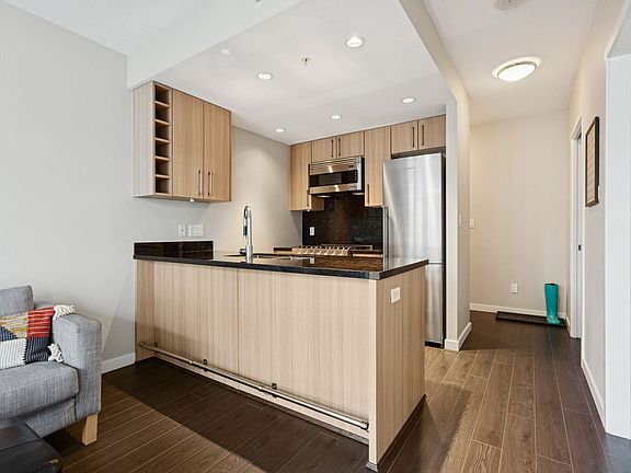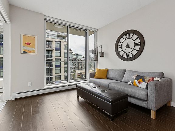 Live in the heart of Olympic Village! This bright 1 bed + den home offers a smart layout with floor-to-ceiling windows, a private balcony, and a generous den that’s perfect for a home office or extra storage. The kitchen features full-sized S/S appliances, stone counters & sleek cabinetry, opening into a light-filled living space. Steps from the Seawall, SkyTrain, shops, breweries & dining, this is the perfect starter home or investment. Includes in-suite laundry, parking, & storage.***Open House Sat, 2-4pm***