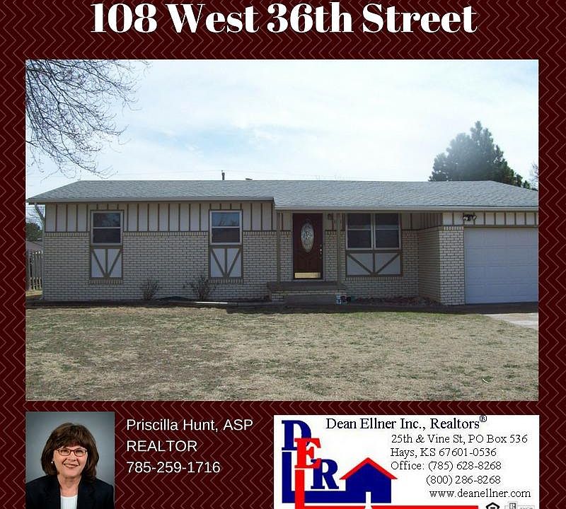 This 1190 square foot single family home has 3 bedrooms and 1.0 bathrooms. This home is located at 108 W 36th St, Hays, KS 67601.