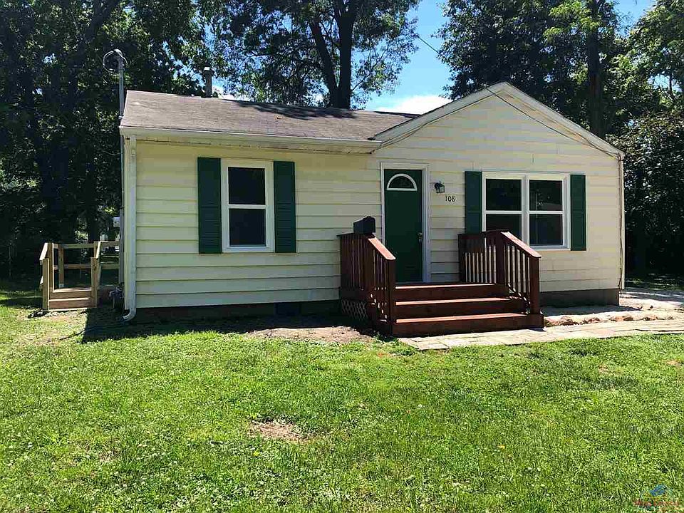 Great first home! New paint and flooring. Big lot 100 x 50. Mature trees. Tile floors in bathroom. Deck off utility room. Big front porch. Newer windows. Vacant and move in ready.