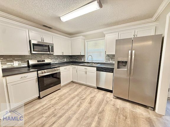 Don't miss out on this Large Half Acre Corner Lot Charming All Brick , 4 bedroom / 2-bathroom 2 car garage and walking distance to Fort Stewart ,Ga ! home that HAS IT ALL!!! Open and inviting floor plan, elegant white cabinetry, upgraded lighting fixtures and recessed lighting. Complete modern home essentials with a comfortable layout.