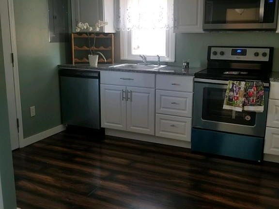 Welcome Home! Completely renovated 3 bedroom/1bath home. Brand new roof, laminate flooring, new carpeting, new appliances, new siding, new Hot Water heater, freshly painted walls, ....ready for new owners! The living room is ready for a coal/wood/pellet stove and comes complete with a barn door to separate the dining area. This is a fantastic home with lots to offer! Call today....this will not last long...