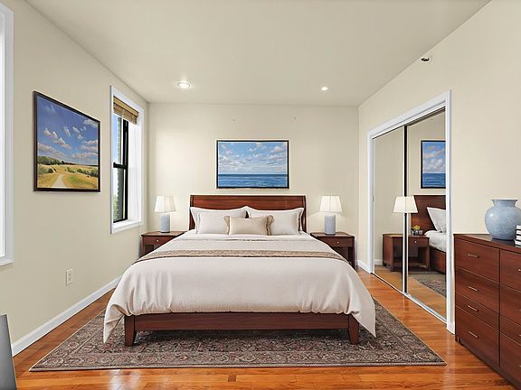 Enjoy views of the New York City skyline and Downtown Jersey City right from your living room in this sun-drenched 2-bedroom condo. With generous bedroom sizes, ample closet space, and beautiful hardwood floors throughout, this home offers both comfort and style. The bathroom has space to install a private washer and dryer, and there's also shared laundry available in the building. Located just one block from the vibrant Village neighborhood, you're steps away from all that Downtown Jersey City has to offer boutique cafes, top-rated restaurants, local markets, gyms, and cozy wine bars. Take a stroll to Hamilton Park, spend a weekend at the farmer's market at Grove Street, or enjoy the waterfront promenade at Exchange Place. Commuting is easy with the JSQ PATH just 10 minutes away and the Grove St PATH within 15 minutes. Street parking is plentiful with permit options, and nearby garages offer convenient alternatives. Located in a charming walk-up building, this home delivers the best of city living with a welcoming neighborhood feel.
