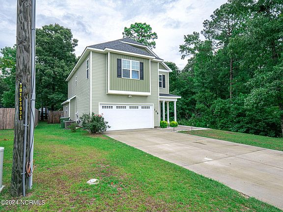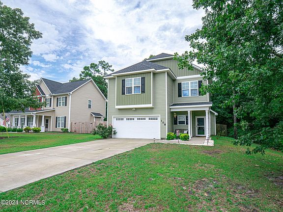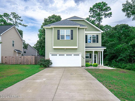 Beautiful move in ready home in The Landing at Everett's Creek. You will love the open concept floor plan, large spacious living space, abundance of closet space and a fenced in back yard! The foyer welcomes you into the home where you will find a powder room and closet off to the left. Head straight into the family room which boasts low maintenance LVP flooring, fireplace, blinds and access to the screened back porch and yard. The family room is wide open to the casual dining space and kitchen. The kitchen is the heart of the home with a HUGE pantry, all stainless steel appliances and a large island with room for bar stools. There is a small mudroom between the kitchen and 2 car garage, perfect for kids backpacks, shoes or your pet feeding station. Upstairs you will find a huge master en suite with vaulted ceilings, dual vanities, soaking tub, walk in shower, water closet and a large walk in closet. There are 3 additional bedrooms all with good closet space, a full bathroom and laundry room completing the 2nd floor. This lovely home is just a few minutes from Topsail Island beaches, the back gate of Camp LeJeune and a short drive to Jacksonville or Wilmington. Come and see everything this home has to offer before its too late!