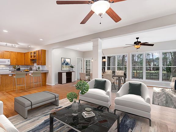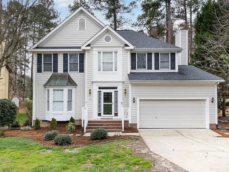 Tucked away in established Settlers Mill in South Durham, this five-bedroom home offers ample gathering space with plenty of natural light and high ceilings, choices on first and second floor for your primary bedroom, updated bathrooms and large fenced back yard. First-floor office can also be used as a bedroom with access to full bath. Screen porch and exterior deck area leads to generous backyard with fire pit. Easy access to I-40, 54, RTP, RDU. NO HOA! *Select photos virtually staged to highlight design/layout options.