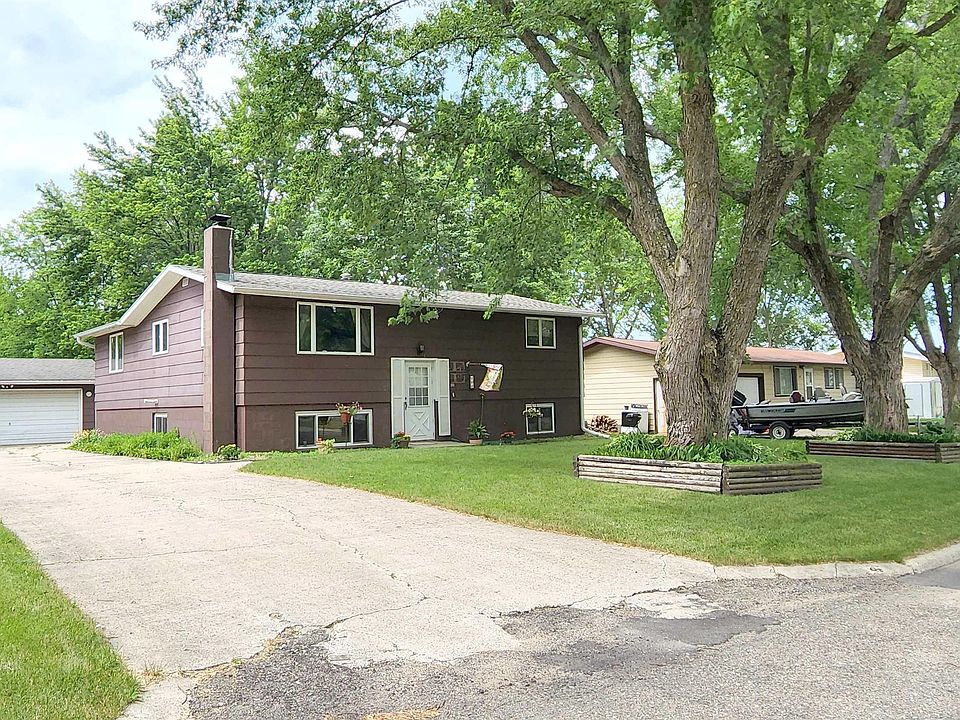 This extra large 4 bedroom, 2 bath home is located, near schools, YMCA and Aquatic Pool. A large addition off the back of this home enables it for a large kitchen, dining area & with a large snack bar. This kitchen is also open to living room making entertaining easy and spacious. A screened in porch also adds to the charm of this home. Several updates in the last few years include: roof 4 years. furnace updated last year, Anderson Windows, appliances, carpets and leaf filters to gutters. Main floor has open floor plan with 2 bedrooms and one main bath that was recently updated by Bath Fitters. Oak doors are found throughout home. Lower level has two bedrooms, 3/4 bath, family room with free standing fireplace, & bonus room with tons of cabinet storage. Could also be used as toy room, craft room etc. Double garage has additional space with garage door for shop, storage etc. Several perennials accent the back yard. A black chain fence will be installed soon.