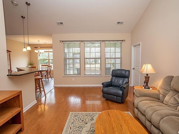 Welcome to this charming cottage retreat with a relaxing water view! Tucked away in the quaint community of West Ridge, this delightful three-bedroom, two-bathroom home offers a serene sanctuary.  As you step inside, you'll be greeted by an inviting open floorplan featuring vaulted ceilings that create a sense of spaciousness and light & wood floors, adding warmth and character to the home. The kitchen boasts 42-inch cabinets, granite countertops, and ample counter space, perfect for preparing delicious meals. From there, step outside onto the screened porch, where you can sip your morning coffee or unwind in the evenings while listening to the soothing sounds of ducks and birds nesting nearby. The spacious master bedroom features a walk in closet & ensuite bathroom, complete with dual sinks, a linen closet, & a walk in shower. The roof was newly installed in 2022, providing peace of mind for years to come.  The home is conveniently located across the street from the clubhouse & community pool.  Don't miss your chance to make this enchanting retreat your own! Schedule a showing today!