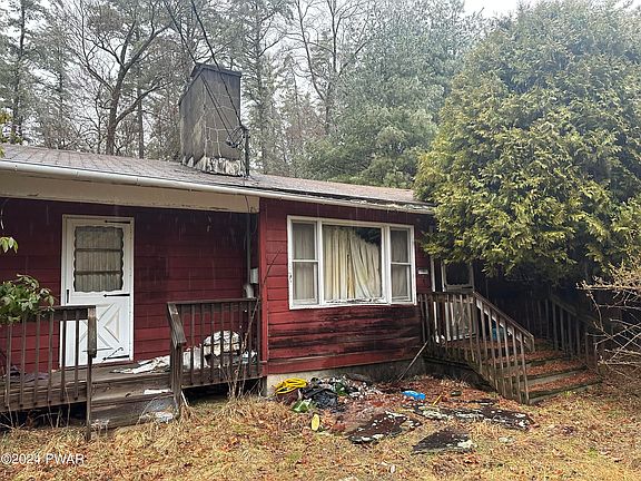 Investor Opportunity! Come See This Value-Priced, Flat Acre+ Property w Two Structures in Beautiful, No-HOA Dingmans Ferry Setting! Backing up to private woodlands and just moments from Childs Park, State Gamelands, the Dingmans Ferry Bridge to NJ and the Delaware River National Recreation Area this is an amazing opportunity to rebuild this property. The first structure closer to the road is a log cabin with significant roof damage. Behind it sits a red wood-sided ranch home. The ranch home is in extremely poor condition as well including a collapsed floor and apparent mold throughout. Property is being sold as-is. Cash-Only at this price. Seller has no knowledge of property. No HOA and beautiful property offer great backside potential. Do Not Delay - Schedule Your Tour Today!