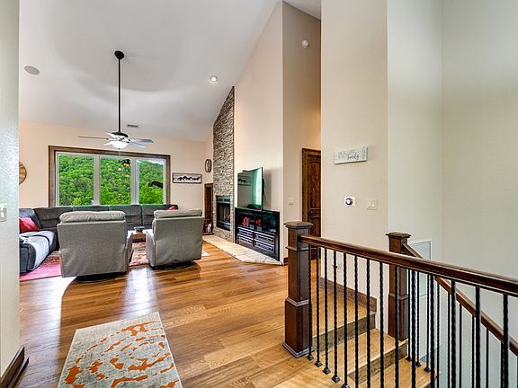 Back on the market after buyer change of plans with a reduced price! Gorgeous views in a premier gated community. This custom 4/ 3.5B + office home greets you with beautiful vaulted ceilings with expansive windows framing your mountain view. The open floor plan flows from the beautiful contemporary kitchen, with stainless steel appliances, custom cabinetry and granite countertops to the dining area into the expansive living room, with floor to ceiling stacked rock fireplace. This home features a home audio system, tucked away in its own closet. The private deck connects a welcoming sunroom to the primary bedroom. The high ceilings and sunroom, massive closet and ensuite give this room a feeling of grandeur. Downstairs boasts high ceilings with a great room, complete with a 7:1 home theater, wet bar, perfect for entertaining or a great space for kids! There are two additional bedrooms and office and another primary bedroom with bathroom and closet. Downstairs opens to a patio with hot tub. The three car garage gives room for storage and workspace. Sundrops of Caney Fork offers terrific amenities: pool, hot tub, fitness center clubhouse, community garden and creek!