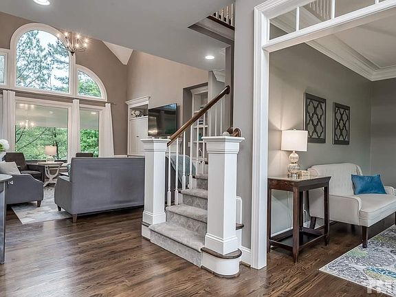 Luxury living in Cary's Wessex, a pool/tennis community. Features include large wooded lot with lush landscaping. This open floor plan boasts a first floor master suite and office. Stunning updates include gourmet kitchen with Wolf/Subzero appliances. Large island is quartz, walk-in pantry, light & bright vaulted family room walks out to outdoor living room. Finished basement includes theatre, fitness room, 2 rooms for storage and workshop.Walk to Umstead Park, neighborhood access to Black Creek Greenway.