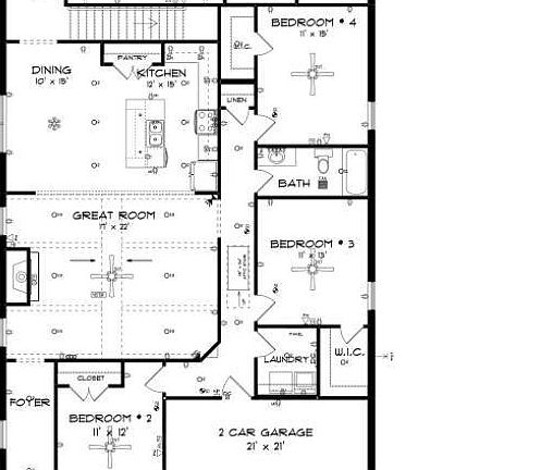 The “Overton” is a 1 ½ story open floorplan with ample possibilities. This four bedroom, two and a half bath plan with bonus room begins with a refined foyer entry way that opens into a roomy living area with a vaulted ceiling. Next experience the open kitchen with large center island and adjoining dining room. The kitchen offers built in appliances, granite countertops and an expanded pantry. The master quarters provides a large bedroom and walk in closet as well as a luxurious bathroom complete with a double granite vanity, garden/soaking tub, and tiled shower with glass door. The bonus room located upstairs includes a half bath