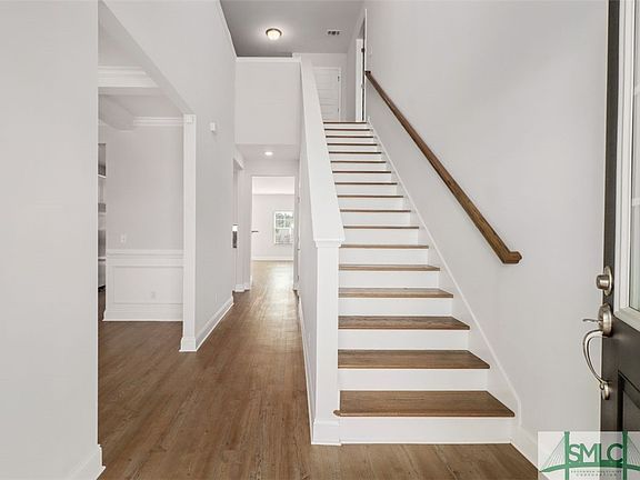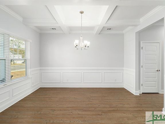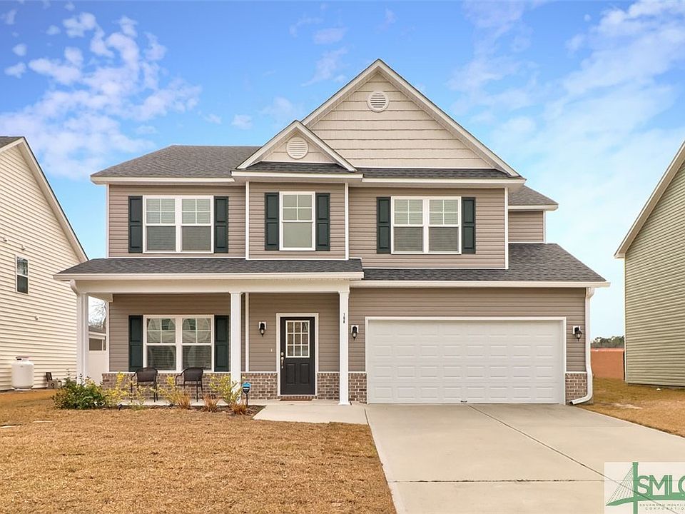 Built in 2021 this 5 bedroom 3 1/2 bath home is like new! Centrally located in Rincon and 24 miles from the new Hyundai Plant and 24 Miles from Downtown Savannah. Directly off the 2 story foyer is a formal dinning room with coffered ceilings and kitchen with granite countertops and stainless appliances. From the kitchen is the breakfast area and large great room overlooking a private fenced in backyard. Also on the main floor is a powder room and bedroom/full bath. LVP flooring throughout living areas downstairs. On the second floor is the primary bedroom with an en suite bathroom that has a soaking tub, separate shower and walk in closet. Also three secondary bedrooms, an additional full bath and laundry room with 2 year old washer and dryer that convey with purchase. The home is covered by transferable home warranty. Upgrades include 6 foot vinyl privacy fence extended back patio, outlet for electric car charger in garage, gutters and wifi controlled sprinkler system & thermostat.