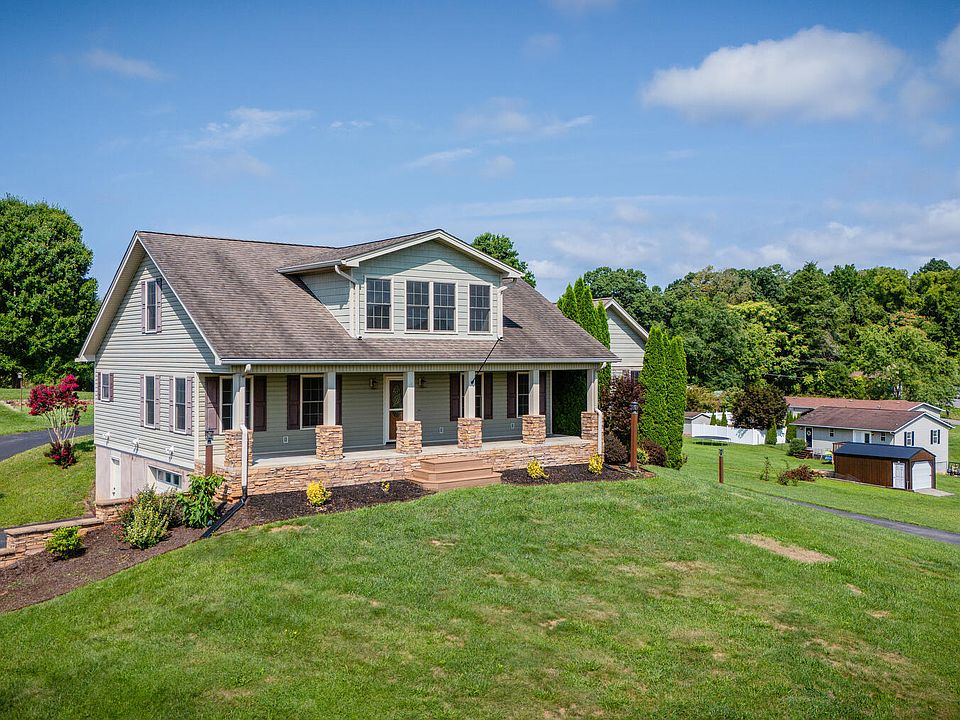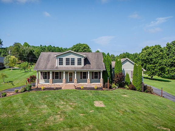 Sunday October 13th Noon - 2:00 PM EST. Country Living at it's Finest!! This craftsman style home sits beautifully on a 1.15 acre lot with panoramic long range views of the Appalachian Mountains. The open concept living room and updated kitchen featuring newer appliances, marble countertops, island bar, and comfortable eat-in dining area. Don't miss the Nice Kitchen Pantry too!! The living room features a gas fireplace with an abundance of natural lighting. A large laundry room, and half bath for your guests complements the main level. There is fresh paint throughout the home and new hardware and fixtures located in all four bathrooms. The main level offers a completely renovated master bathroom, a generously-sized closet and spacious Master Bedroom. Upstairs, you walk up to a landing with the perfect amount of windows to enjoy the incredible mountain views. It is great for a second sitting area or office. The other two, very large bedrooms are also on this floor. Both offer sizable closets and have full bathrooms. It's rare to find a home with en-suite bathrooms in every single bedroom! Aside from your main garage that enters directly into the main level, there is an unfinished basement with plenty of room for storage, additional options for finished square footage, or a home gym! This basement also has a garage which has easy, paved access for all of your lawn equipment. A new water softener/conditioner has been installed here to ensure the best quality of water throughout your home. If you prefer enjoying the outside, you have the ideal front porch meant for rocking, a newly covered backyard patio, renovated fire pit, new walkway, and a new RV parking pad! You will also enjoy the convenience of a new, 20x10 storage building. This is a 'Must-See' to really appreciate Home Property!