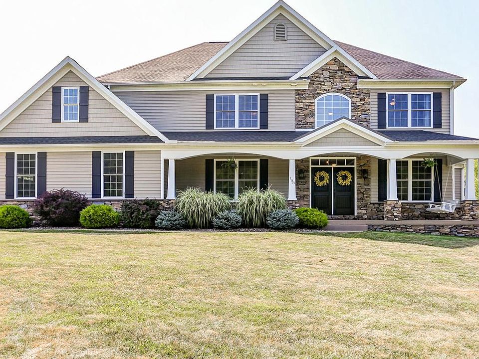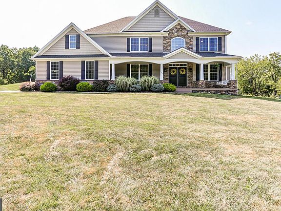 This gorgeous Willow Lake home in Silver Spring Township, is nestled on a private 3 acre lot. The front porch boasts a stunning view of the Blue Mountains and stocked pond, surrounded by willow trees. Backyard is a resort area ready for entertaining. Youll enjoy the 20x40 heated, saltwater pool, hot tub, and 16 granite bar. Pool house provides storage space for your pool accessories and direct propane lines run to both the gas grill and fire pit. 14x32 covered porch includes two ceiling fans, tv mount and wired sound system ready to pair with your Bluetooth device. There is also direct access to the beautiful, tiled sunroom. Just inside the back door is the first floor bath which houses a stacked washer and dryer. Tiled hall leads to walk in pantry and 3 car oversized garage. The rest of the first floor has wide-plank, hand scraped, hickory floors. This custom built, Jason Tiday home has an open floor plan, rounded corners, large closets and built in cabinets which provide ample storage space. Kitchen contains 36 and 42 soft close cabinets, large island, granite countertops, and GE Monogram appliances. A window seat near the dining area provides additional seating. Great room has propane fireplace surrounded by stacked stone. Office and dining room are just inside the double-door front entry. Four bedrooms and laundry room are on the second floor. Large, primary bedroom has French doors, tray ceiling, hardwood floors and separate his/hers walk in closets. Walkout basement provides 1800 additional square feet of unfinished space. Come see this exceptional property before its gone!