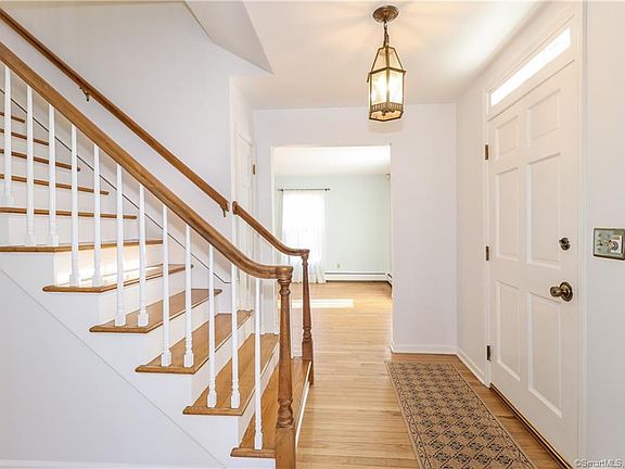 BEST VALUE IN EASTON PRICED BELOW APPRAISED VALUE This 4 bedroom 2.5 bath center hall colonial home sits on a private three acre lot in lower Easton - ideal for commuting. The afternoon sun brightens up the front to back living room that has ample space, hardwood floors and a wood burning fireplace. The dining room, kitchen and family room are all connected, and the oversized screened-in porch provides additional entertaining space with french doors from both the family room and living room for easy flow. Tucked away at the back of the home, the porch provides a place to relax in the peace and quiet at the end of the day, or spend time with family and friends enjoying the flat and spacious back yard. All the roomy bedrooms have hardwood floors and the master bedroom suite has its own hallway off the upper landing for additional privacy. Two car garage is straight off the kitchen for easy entrance. Roof is less than 10 years old. Bathrooms need updating as does the kitchen, but at this price you can give them your own touch and sense of style. Enjoy your new home before summer