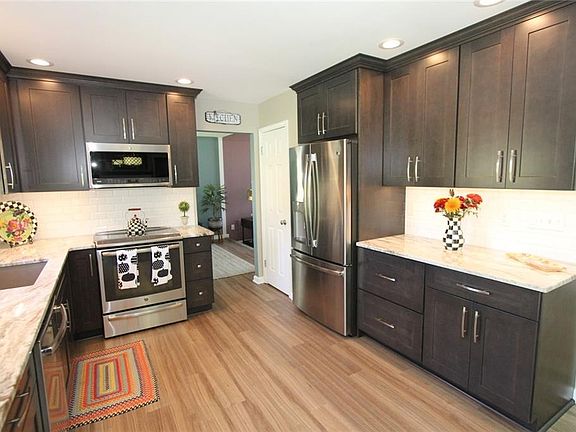 LOOK NO FURTHER! This beautiful 3 bedroom colonial home, includes an eat-in kitchen, granite counters, dark maple soft close cabinets, white subway tile and stainless steel appliances-2017. The first floor also includes large living area with vaulted ceilings, wood burning fireplace, & first floor laundry/mudroom. Rec room and separate office/spare room with closet in basement. The landscaping is perfect with a lovely stamped concrete patio overlooking a wooded 1+ acre lot! Furnace/AC 2016, Hot Water Tank 2017, 30 year roof 2010, full list of updates attached! Bring your pickiest buyers, you don't want to miss this one!
