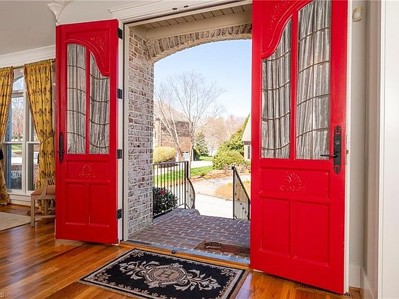 Beautiful French Provincial style home in Winston-Salem's original luxury lifestyle neighborhood, Greenbrier Farm. Multiple entertaining spaces with main level living room, great room with fireplace, formal dining, breakfast area, sunroom & screen porch overlooking a lake with your own private waterfront deck. Exquisitely remodeled kitchen with high end Fisher Paykel gas range, custom cabinetry, built in microwave & island. Main level primary suite with gas fireplace & glamour bath with dual vanities, jetted tub & separate shower. 4 bedrooms upstairs with 2 full jack & jill baths. Finished basement with multiple living spaces & 6th BR/guest suite with full bath. Plenty of parking with circular driveway and 4 car basement garage. Fresh paint throughout & refinished hardwoods, updated landscaping & lighting, irrigation system, inviting entry with gas lamps. Neighborhood has pool, playground, greenway, tennis/pickleball/basketball and 4 lakes. Floor plans in attachments.