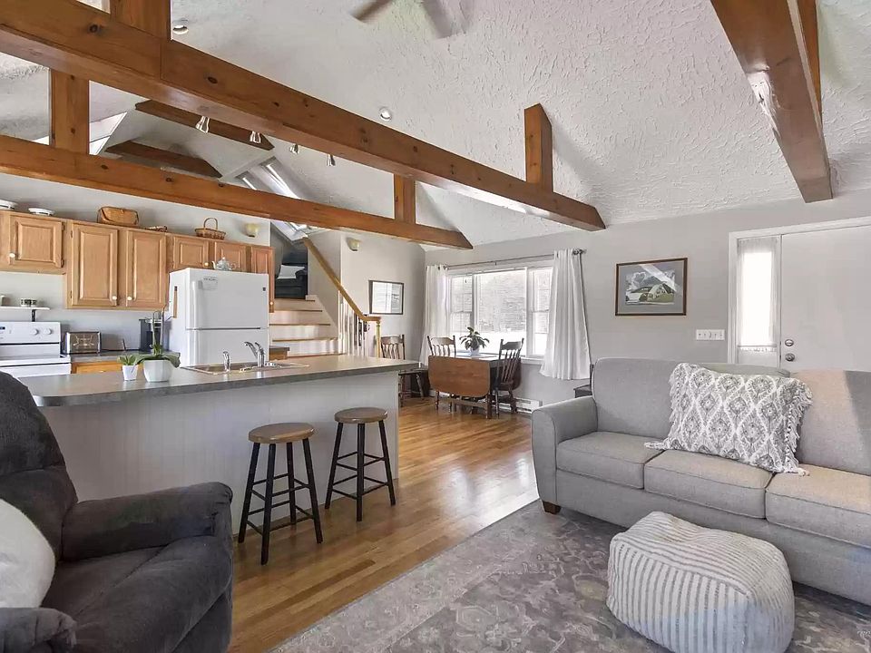 1 bedroom (loft) with washer and dryer in unit. Great back deck and small front patio. Very convenient Falmouth location. Tenant pays for electricity. Unit has a heat pump which also provides cooling. There is plenty of parking and additional storage if needed.