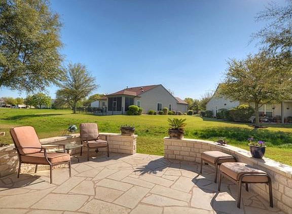 Enjoy the Sun City lifestyle with this contemporary Magnolia plan with rooms to accommodate office, crafts, and guest room. Upgraded light fixtures & flooring, crown molding, and decorator paint colors create the special contemporary feel. The flexibility of the great room extends onto the stone patio featuring covered & open living areas and overlooking the open space behind. Being on the lawn maintenance program, makes this an exceptionally easy to care for home. Lawn maintenance included with HOA fees.