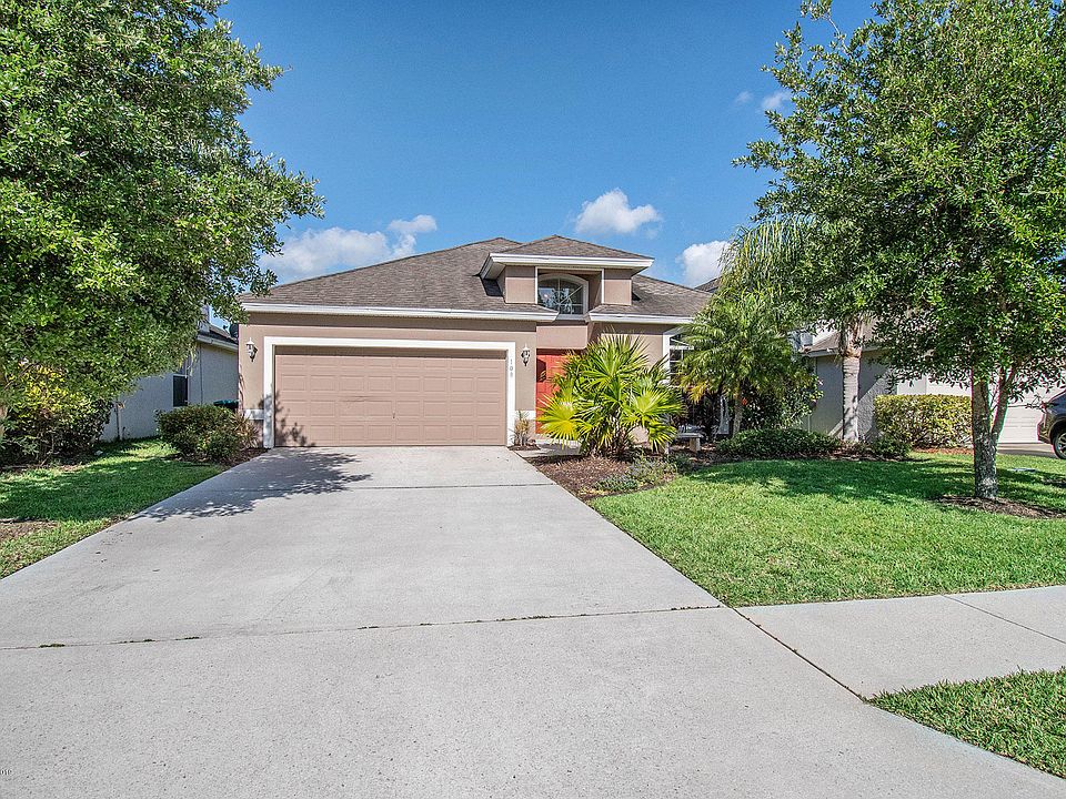 Paradise Found! Move -In Ready 4 Bed 2 Bath Home with open eat in kitchen and family room with a View! It also has a Beautiful Bright and Airy Living Dining Combination and indoor laundry in the gated Brentwood Lakes Preserve. Relax on the covered patio enjoying sunsets on the lake or walk just a few steps to the community pool or playground. This has been a vacation home so it is well kept with new carpet in the main living area. Entertainment/wine cabinet in Master can stay. Master has walk-in closet and Master Bath has large soaking tub and separate shower. Conveniently located near the new Heritage Pkwy giving great hwy access as well as being close to shopping, schools, beaches and theme parks.