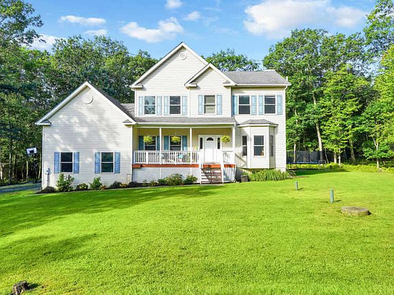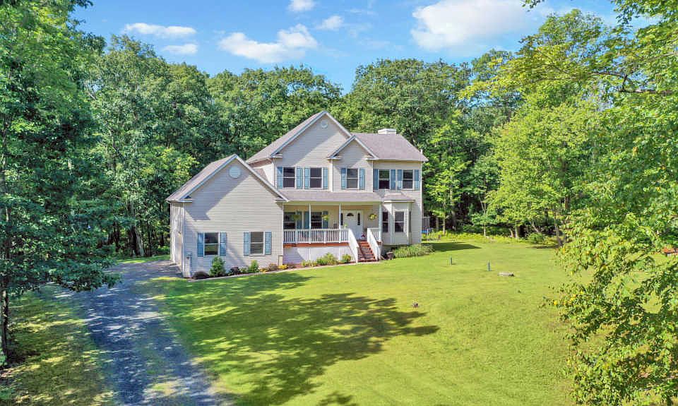 PRIVATE, PICTURESQUE COLONIAL ON 1.11 ACRES BACKS TO GREEN SPACE! WALK TO BALL FIELD! Central A/C! Located in the desirable, gated, Conashaugh Lakes community, find this 3 bedroom, 3 bath TURN-KEY - TOTALLY UPDATED HOME! Outside covered porch is the perfect spot to appreciate changing leaves & nature! Inside, beautiful hardwood floors, cathedral ceilings, crown molding & freshly painted walls! Immaculate kitchen w/plenty of cabinet storage, counter space, & glass sliders to back deck! Beautiful propane fireplace in your living room w/adjacent family room. Formal dining room! Upstairs large master ensuite w/double vanity & soaking tub surrounded w/knotty pine. Two more large bedrooms w/guest bathroom. Garage w/walk-up storage! Electric panel w/transfer switch & generator hookup!