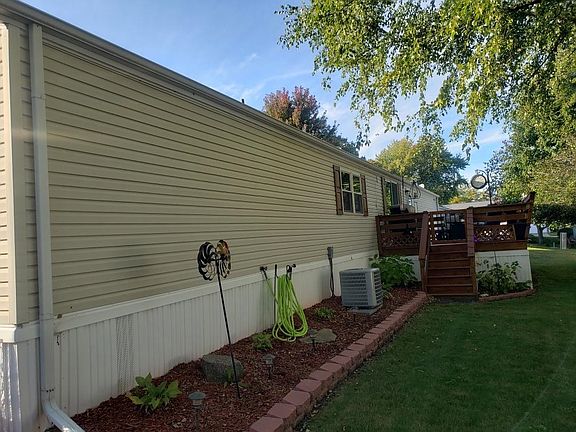 Well maintained mobile home with vaulted ceiling throughout. There are plenty of cupboards and counter space in the kitchen. The two decorative windows one one side separate the living room and eating area. Skylights bring in natural light in the kitchen and baths. The master bedroom hosts a lighted walk in closet and bathroom with a garden tub. Updates include: Stove, entry way carpet in 2021, stove hood, storm doors in 2020, Furnace and A/C, and carpet in 2019, double pane windows in 2019 & 2018, kitchen glass skylight in 2018, water heater in 2017, and much more. Make is a skyline with the length of 16' x 76'. Lot rent is $330.00 a person and $10.00 each additional persons. Buyers must be approved by Knollwood Estates Mobile Home Park management. Directions: Straight on Vista, Left on Roundtree, Left on Knollwood, Right on Woodale. Water softener and dechlorinator do not stay.