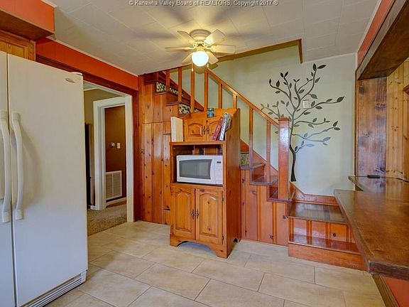 Original hardwood floors through out except kitchen, baths & utility. Land, garden almost one acre and only about 1 mile from the Nitro Exit. Carpet over hardwoods on 1st floor, storage galore upstairs. Chicken coupe and chickens to go with house if desired. Small green house, Gorgeous, quality wood paneling upstairs. 3 car garage; the large, newer garage has an upstairs.