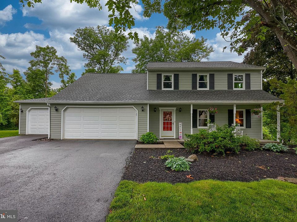 Welcome to the timeless charm of the beautiful tree-lined streets of Woodridge Estates. This updated stunning 4-bedroom, 2.5-bath home is situated on a spacious .45-acre semi-private lot and immediately captures your attention with its inviting front porch. The home features new siding with house wrap, new windows, and new roof—all completed in 2018—offering peace of mind and energy efficiency. The 3rd bay oversized 26x13 garage was added in 2023 perfect for storing your kayaks, yard toys, or for the car and hobby enthusiasts, and it is deep enough for longer truck models. Inside, the welcoming foyer features a custom-built drop zone, ideal for organizing everyday essentials. The spacious living room has beautiful wood floors that flow seamlessly into the formal dining room. Here crown molding, and shadow-boxed walls create a warm and sophisticated ambiance for hosting and everyday living. The beautifully updated kitchen is a true centerpiece, boasting stainless steel appliances, granite countertops, a custom center island, and a breakfast bar built in 2020 that opens to the family room. Both spaces feature luxury vinyl plank flooring, making them as durable as they are attractive. The family room offers a cozy wood stove with a lined chimney, built-in bookshelves and storage, and access to the oversized deck through a sliding glass door installed in 2018—perfect for indoor/outdoor entertaining and an additional slider off the kitchen adding to the accessibility of the deck and yard for grill night. A remodeled half-bath on the first floor adds stylish convenience with modern fixtures. The 2nd floor boasts a generously sized owners suite with plenty of closet space, and a gorgeous full bath remodel with a double bowl sink, and a 4 ft. walk-in shower. The additional 3 bedrooms all have the perfect amount of closet space, ceiling fans and lovely wood flooring. The renovated 2nd floor bath with gorgeous shiplap walls is perfect for a relaxing soak in the large tub/shower and surround. Laundry day will be a breeze in this spacious renovated 2nd floor laundry room with a collapsible folding table (2020), leading to a bonus 2nd floor storage room, perfect for all your catch all items. This room has a window and could be a perfect, art, sewing, play room or office space. Down to the finished walk-out lower-level family/game room with a wet bar and additional storage room. This leads out to the back yard area where you can walk right into the peaceful nature filled yard with plenty of wildlife. The rear yard has a vinyl fenced area, which is perfect for a dog run or play area right off the rear deck. The 16x10 shed has a metal roof and storage over hang for firewood storage or even just a cozy sitting area, overlooking the scenic rear yard. This home offers a high efficiency Bosch heat pump and air handler installed in 2024. Blending character, comfort, and modern updates, this move-in-ready home is close to parks, schools, and local amenities. Don’t miss your chance to call it home—schedule your private showing today.