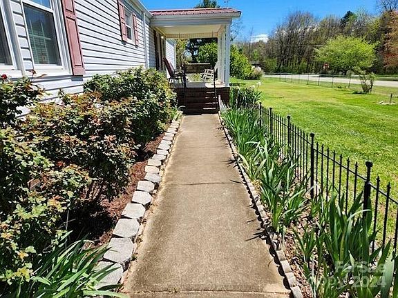 Nice home sits on large level lot. This home features a wonderful covered front porch and huge deck off the back of the home. There is also a shed and fallout shelter, in case of Tornado. Good sized great room with wood look flooring. There is a ton of cabinetry in this home, plenty of space for kitchen storage. Eat in dining area between the kitchen and the great room. Laundry room off of the kitchen. This home has two bedrooms, and they are located at either end of the home which is nice for privacy. The primary bedroom has two separate closets and a large bathroom. The vaulted ceilings in the home make it feel spacious. Large carport for parking. All appliances convey. New hvac in 2021. Metal roof installed in 2009. Close to Troutman with rural feel.
