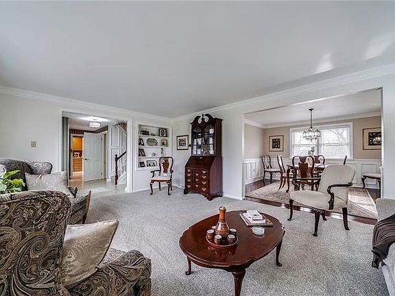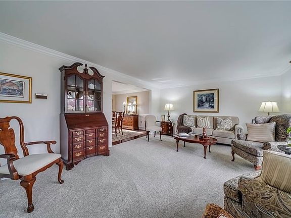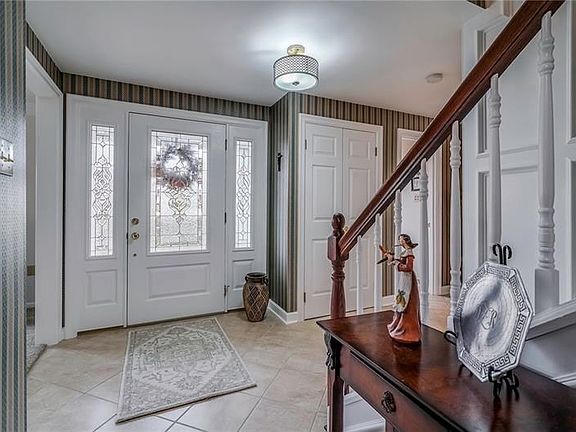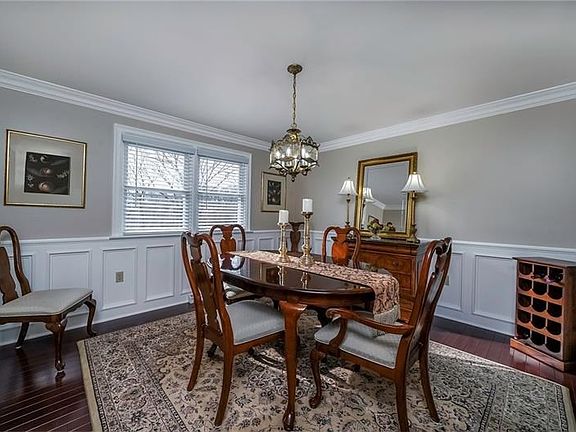 This impeccably maintained & immaculate 4 bedroom 2-1/2 bath colonial charmer in the Wyngate neighborhood of Moon Township is sure to impress. Upon arrival you'll love the curb appeal & cul-de-sac location. Foyer features large format tile flooring that extends throughout the first floor. A large living room, & the rest of the home, feature brand new carpeting. Crown molding, wainscoting, & hardwood floors bring elegance to the formal dining room. Spacious eat-in kitchen offers great prep space thanks to the granite countertops. Family room has a wood burning fireplace & provides access to the covered deck on the rear of the home. First floor utility/laundry room offers great storage. Owners' suite with walk-in-closet & ensuite bath. 3 spacious bedrooms & full bath round out 2nd floor. Basement is partially finished & offers great additional living space. Private tree-lined view off rear. Location provides easy access to shopping, dining, and PIT Airport with a short commute downtown.
