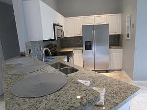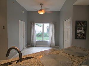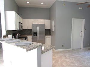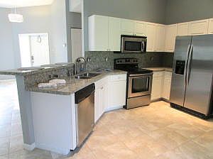 Volume ceilings in great room, open kitchen, granite countertops, brand new stainless steel appliances, new engineered hand scraped hardwood in second and third bedroom, no carpet. Vaulted ceilings in master bedroom. You can fit king size bed. There is plenty of storage space in master walk-in closet. New blinds have been installed as well as curtains. This home has accordion hurricane shutters for your protection. Neighborhood and yard is nicely landscaped. Community features spa, heated pools, tennis courts, boat and RV storage for very reasonable fee, soccer field, children's playground, volleyball, racket ball, gym and clubhouse. Gated community close to everything. 10 minutes drive to beaches.