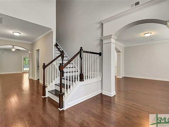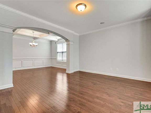 HONEY, STOP THE CAR!! Come settle into this beautiful home in Buckhead East, one of Richmond Hill's most sought after neighborhoods. This home is MOVE-IN READY with FRESHLY painted walls and BRAND NEW hardwood flooring. Relax on the covered patio that looks out to the peaceful woods behind the PRIVATE, large fenced yard. The only neighbors you will see behind you are the four legged kind! Entertaining is easy with the large, open floor plan with one bedroom (new carpet) and full bath on main floor. Oversized dining room has gorgeous coffered ceiling and opens to formal living. The master bedroom has a sitting area and large bathroom with separate vanities and storage tower. The spacious master closet has all the space you will ever need! All of the bedrooms upstairs are large and have walk in closets. If you still need more space, there is a large bonus room upstairs. Walk to community pool, McAllister Elementary, DeVaul Henderson Park. MUST SEE! No flood ins. required!