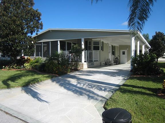 A must see. Great Snow bird or full time home, Very Well Maintained . Partially furnished. New single hung double pane thermal windows for entire home on order!!! Lovely comfy furniture in the living room. Very cozy. Great Open Floor Plan for entertaining. Guest bath has a tub shower, high rise toilets and raised Vanity. Master bath has step in shower, high rise toilet and raised Vanity. New built in cabinets in the dining room matching the kitchen cabinets already there. Front facing lanai with new screens with new roof. New amazing landscaping & rock. Beautiful curb appeal. New gutters, down spouts, carport roof. New golf cart garage roof. All New shelving in golf cart garage with an AC unit in there as well. New brushed nickel faucets 2022 New dishwasher 2022 New Stainless steel sink & faucet. New AC 2021 Engineered Flooring through out home, beautiful. New roof 2018 Hot water and Irrigation 2004.