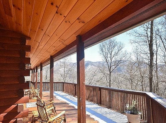 Built with exceptional quality, and finished beautifully inside with hardwood flooring, T&G walls, high ceilings and a wall of windows that bring in those magnificent mountaintop views. The living room has a gorgeous floor to ceiling stacked stone fireplace with a unique artistic addition crafted into the stonework that becomes the focal point of the room. Enjoy main level living with the master suite conveniently on the entry level. Upstairs are two large bedrooms w/ 2nd bathroom to serve that floor. Downstairs you can gather friends and family in the rec room plus there's a hot tub included located just outside on the lower terrace. A bonus room also downstairs could be additional sleeping quarters and there's another full bath at this level. At 2800+/- elevation, this great mountain home is situated to enjoy the long range mountain views from the wrap around deck. As a second home, you could rent out your away time as a vacation rental to others. It has a lucrative rental history. Optional detached Guest Cottage is also available w/MLS#26004081.