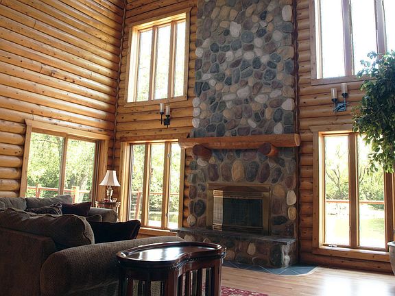Your search for the perfect home is over. This custom log home is situated on over 19 acres of land providing you with the peace, privacy, and potential every homeowner wants. Enjoy viewing your vast property on the wrap-around deck or go fishing right in your backyard from your stocked pond as you listen to the many songbirds and tranquil splashes of your very own waterfall. But wait, it gets even better. As you walk into the foyer of the home you are presented with the stunning, two-story fireplace bordered by large windows and surrounded by custom pine log walls and impressive vaulted ceiling. The kitchen is the perfect gathering place, featuring its own fireplace, stainless steel appliances, quartz countertops, massive island, and views of the pond and waterfall. Also, on the main level of the home is the generously sized master bedroom with its own fireplace, master bathroom, and two walk-in closets. On the second story of the home, you will find the family room loft with its own balcony and beautiful views of the sunset, three additional bedrooms, two sitting areas, and a full bathroom. There is also an in-law suite located above the garage with its own entrance, kitchen, living room, bedroom, full bathroom, and balcony. Need more room? Well, the partially finished walkout basement provides you with an additional 2,500 sq. ft., a sixth bedroom, and a full bathroom. Just when you didn't think it could get any better....the 4 car, heated garage has 9' tall garage doors and 13' ceilings! This home has everything. Have horses? There is room for them too. Don't let the opportunity to own your own piece of heaven on earth pass you by.