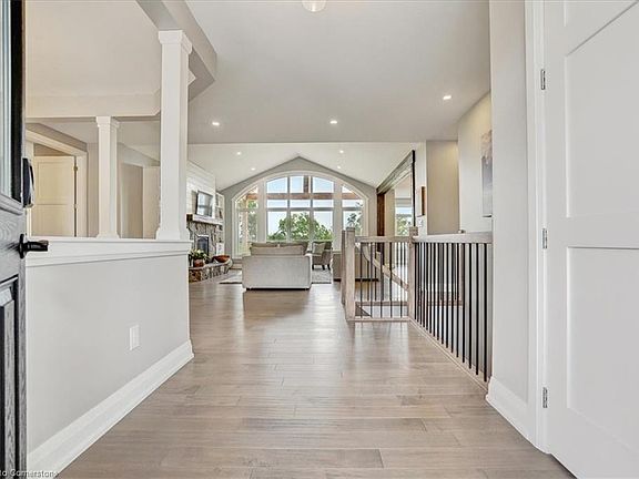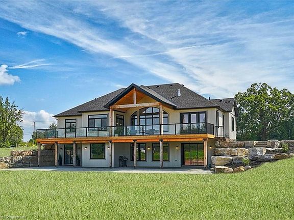 This luxurious country home situated on 2.48 acres offers unparalleled living with its impeccable design and stunning features. This expansive property with 5 bedrooms and 3.5 bathrooms is perfect for families of all sizes. As you step inside, you'll be greeted by the grandeur of the great room with cathedral ceilings and beautiful fireplace. The large kitchen is a chef's dream, boasting quality cabinetry and high end finishes. Prepare gourmet meals with ease and entertain guests in style. Step out onto the covered back deck to take in the breathtaking views. Whether you're enjoying your morning coffee or hosting a summer BBQ, the expansive 1700+ sq.ft of patio space is perfect for both relaxing and entertaining. The primary bedroom feels like your own private retreat, featuring an ensuite bathroom with glass shower and luxurious freestanding tub, a dressing room, walk-in closet, and walk-out to the covered back porch. The other wing of the home offers two more generously sized bedrooms and a full bathroom. The mud room has main floor laundry, plenty of storage and inside entry to a double garage. The bright and spacious lower level would make the perfect in-law suite, boasting 9-ft ceilings, lots of living space, kitchen/bar, 2 more spacious bedrooms, full bathroom and walkout to a terrace adorned with armour stone and more stunning views. Don't miss the opportunity to own this extraordinary luxury country home, all within a short drive to Cambridge, Hamilton and the GTA.