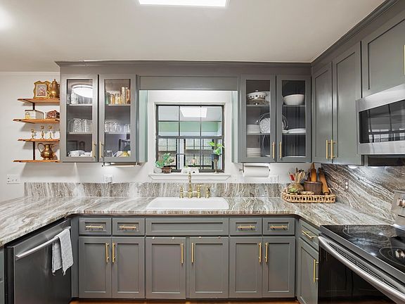 Welcome to this stunning 3-bedroom 2-bathroom house with acreage and a flowing creek that creates a serene setting, offering a unique and peaceful living experience in the country. This home features a large rock fireplace, a detached garage with a Finished Room Over Garage (FROG), over 2000 total square feet, 2 large walk-in closets, sunroom, new flooring, spacious master bedroom, U- shaped covered front porch to enjoy the mornings and evenings listening to your own creek. Large windows offering panoramic views of the creek and the lush vegetation on the property. The kitchen features custom cabinetry, made of high-quality wood, and painted with a color that blends with the exterior natural environment of this home. This master kitchen also offers sophisticated hardware that adds a touch of elegance. The countertops are made of a durable and beautiful marble offering a sleek and polished look. Elegant lighting fixtures are located throughout this home. The pendant lights and chandeliers create an elegant ambience enhancing the environment and functionality of this home. Other features are that this property has front, back and side fences large enough to have horses, chickens, or any farm animal. The property has two wells, one is an artesian well. There is also a new 50amp RV electrical hookup. This home is perfect for those looking for a charming and comfortable home and for those who appreciate peace and tranquility.